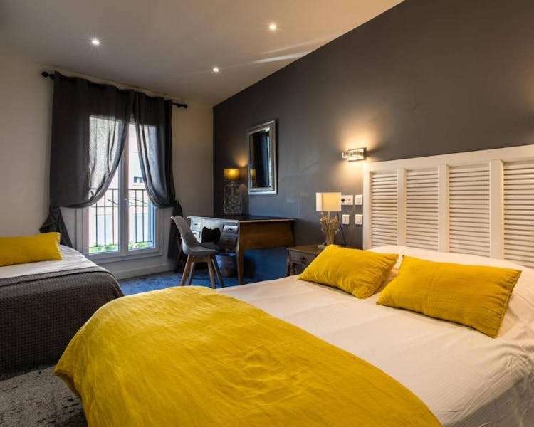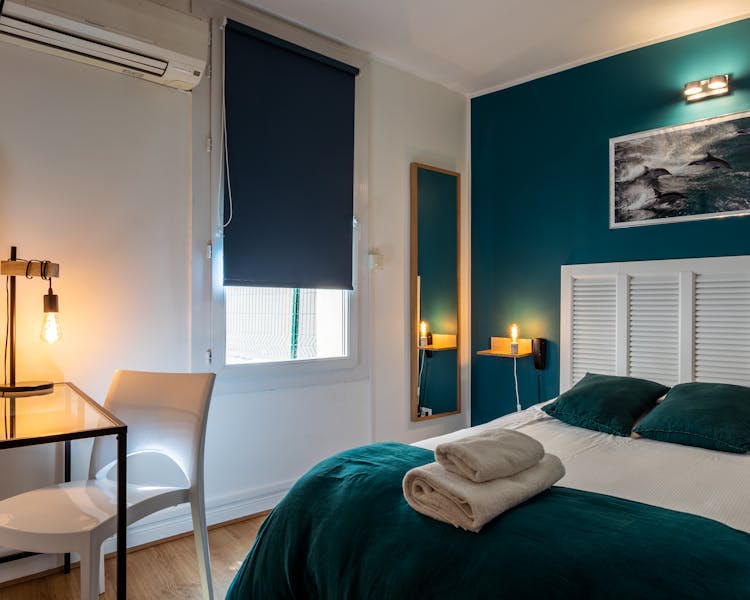 Spacieuse et confortable, notre Chambre Quadruple est idéale pour les familles ou les petits groupes souhaitant profiter pleinement de leur séjour à Marseille. Avec un grand lit double et deux lits simples, chacun y trouve son espace, dans une ambiance chaleureuse et fonctionnelle. Pensée pour conjuguer confort, intimité et esprit de partage, elle vous offre un cadre lumineux à deux pas de la mer et du quartier vivant de la Pointe-Rouge.