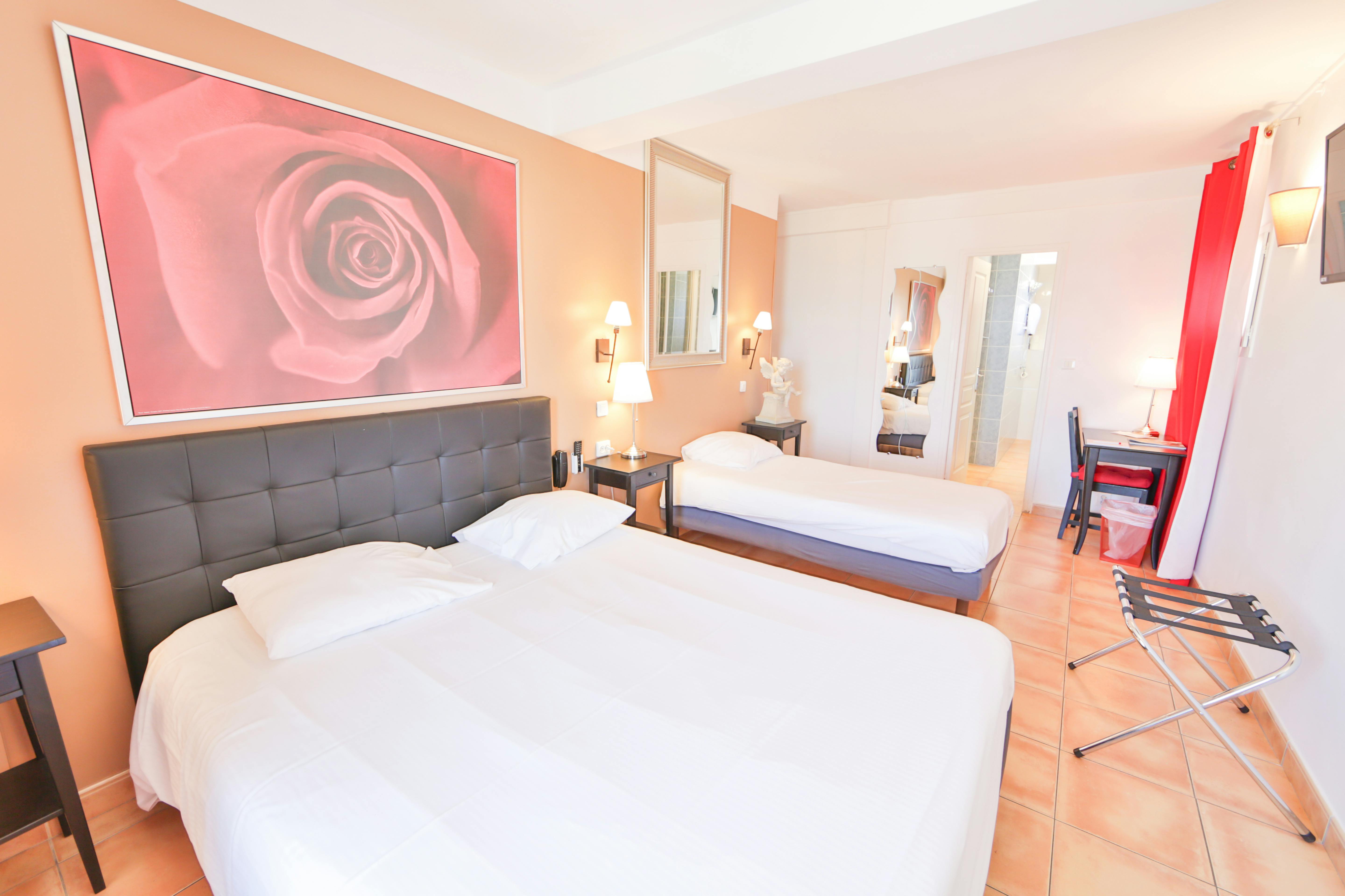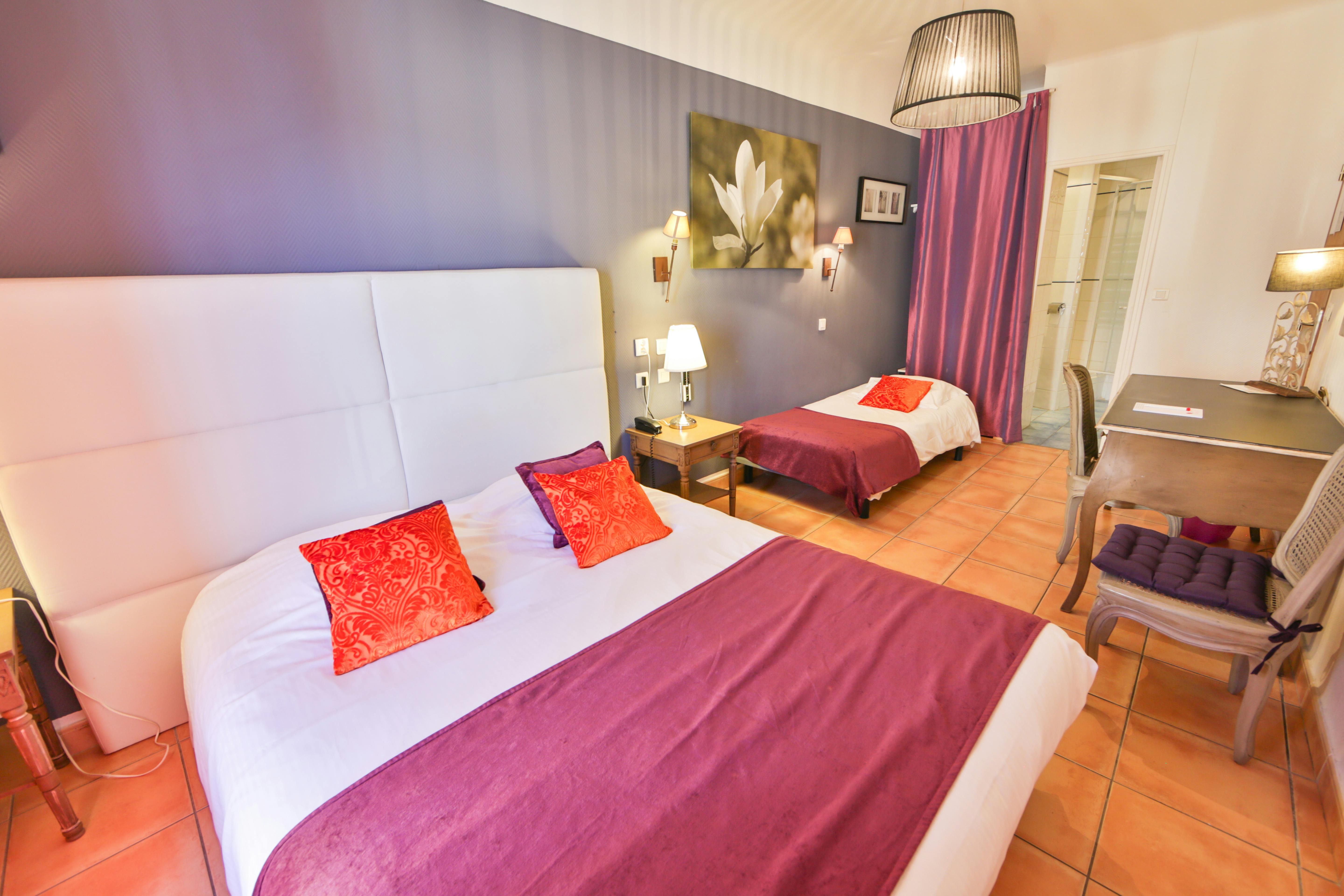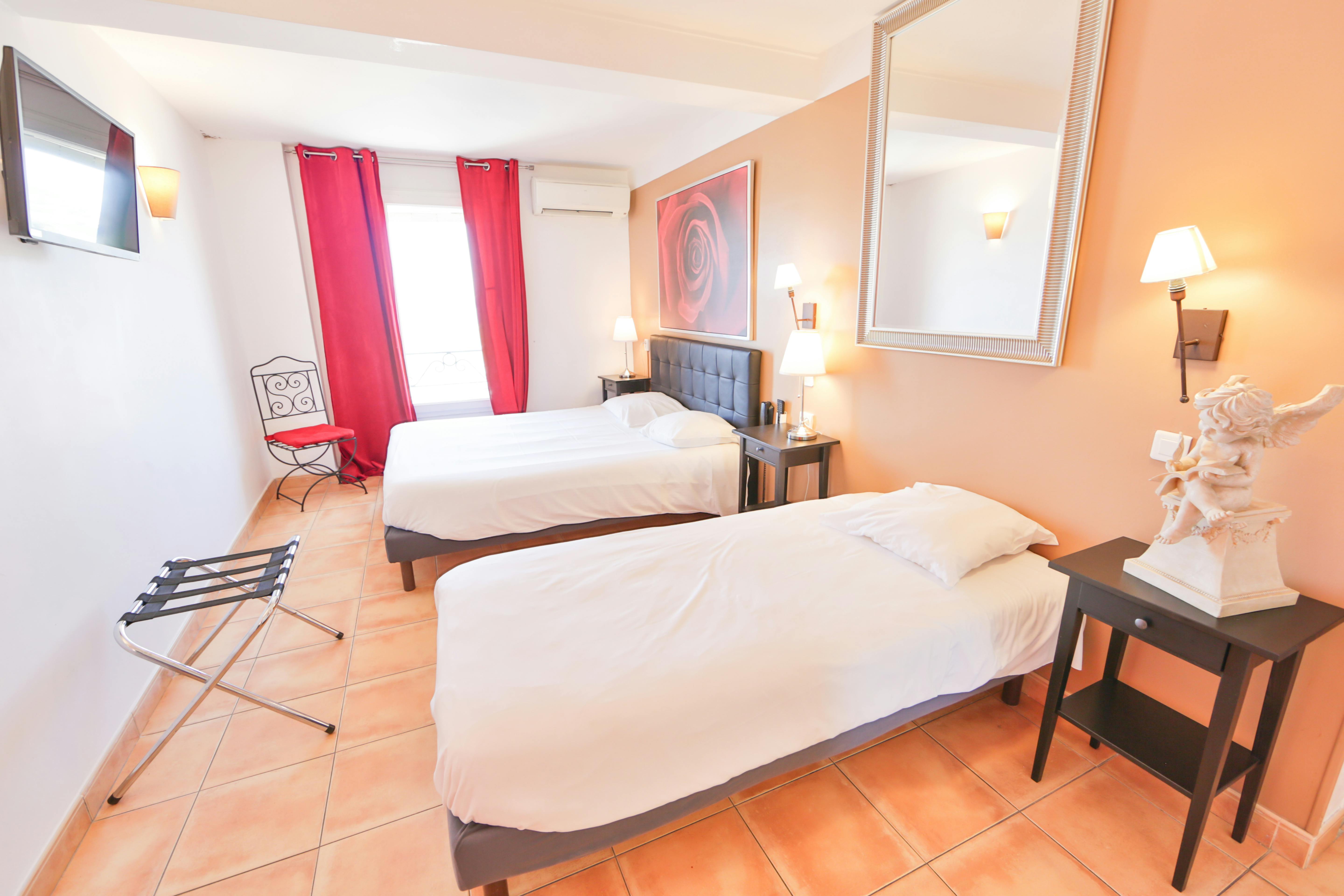 Avec son aménagement confortable et sa décoration soignée, la Chambre Triple Privilège offre un équilibre parfait entre intimité, fonctionnalité et détente, dans une atmosphère chaleureuse typiquement méditerranéenne.